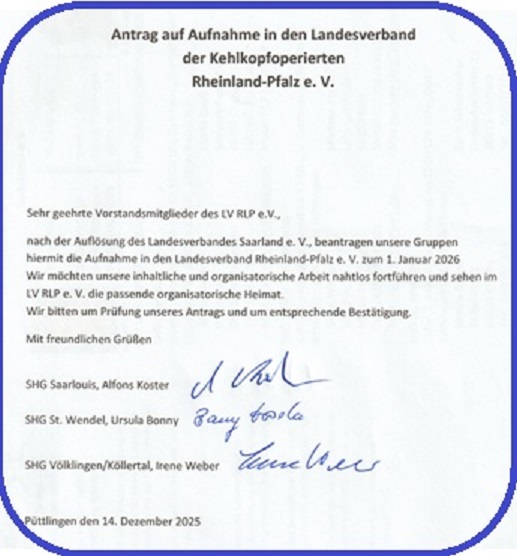 Für die 3 saarländischen SHG´s übernimmt der Landesverband Rheinland-Pfalz die Geschäftsührung.